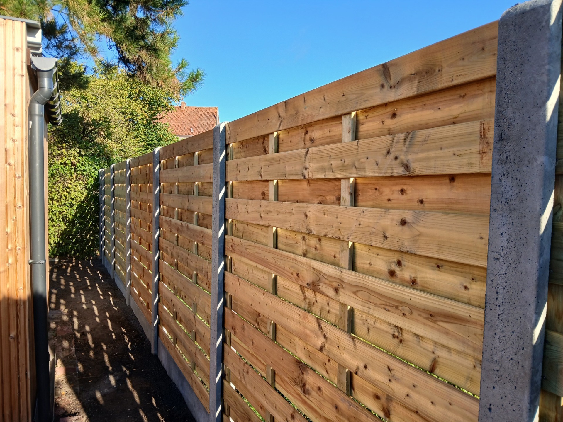 Betonafsluiting slag 230 met betonplaat 180/50 en ingeschoven EXTRA tuinscherm 180/180