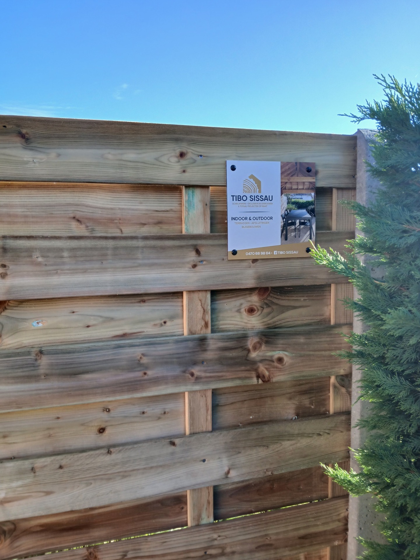 Betonafsluiting slag 210 + betonplaat 180/40 met gardival tuinscherm ISAURA TWIN PINE